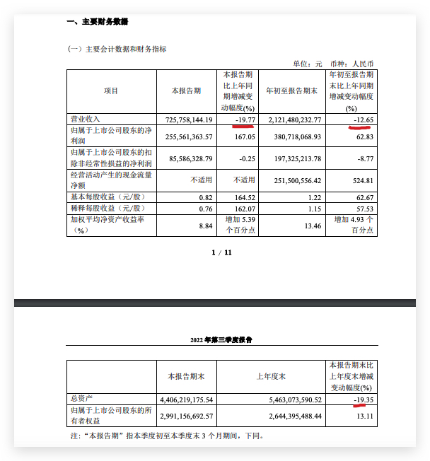 中华网财经10月25日讯:好莱客(603898)(603898.SH)发布2022年第三季度报告显示,2022年第三季度好莱客营业收入为7.26亿元,同比减少19.77%;归属于上市公司股东的净利润为2.56亿元,同比增加167.05%;归属上市公司股东的扣非净利润为8558.63万元,同比减少0.25%。
