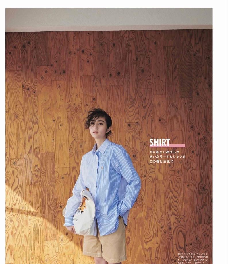 基本款的内搭,在天气热的时候可以直接单穿,而当温度不足20度或者有阴雨天气的时候,再搭配外套也是很好看很和谐的。比如蓝色的条纹衬衫,率性干练中带着一种清澈的气质,搭配卡其色中裤,一种办公室里的摩登气质迎面而来。