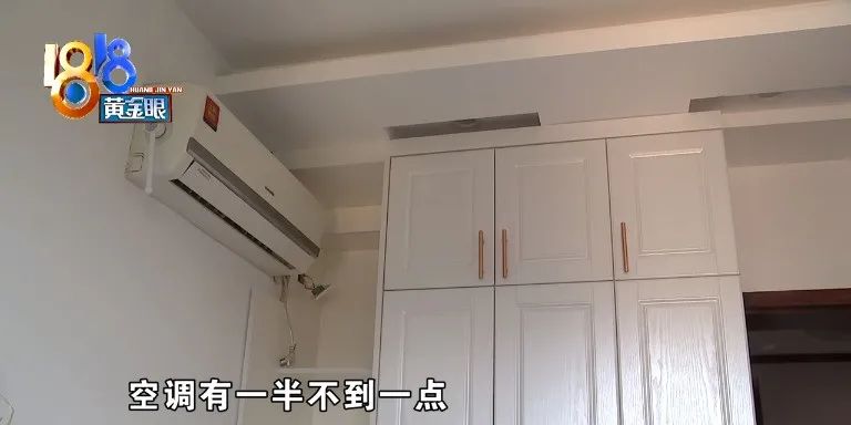 程女士:“定制衣柜的设计师量的时候说(空调)要移,群里最先那个设计师,他说那你就不需要移了,他们也不愿意给我移,我又不想自己再花钱移,我就说你就按不移这个位置来设计就可以了,这边留空的,我以为他给我设计得很好,就这样了,空调有一半不到一点,是在衣柜里面的。”