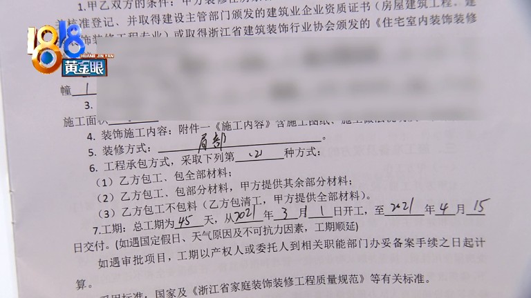 杭州莫干山路月星家居4楼,有家杭州易改帆新科技有限公司。3月1号,程女士跟这家公司签了合同,要重新装修一下家里的儿童房。工期从 3月1号到4月15号,装修方式是 局部,主要做小房间的油漆和柜子等,总价13500元,程女士已经付了全款。4月8号,工人安装了衣柜。