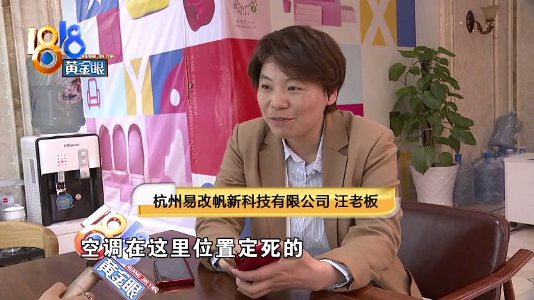 杭州易改帆新科技有限公司 汪老板:“空调在这位置定死的,这边做柜子的话,只能是这样做,不然这个怎么做,要不她之前花200块钱把空调移位,装空调安空调,我们这边都不做的。”