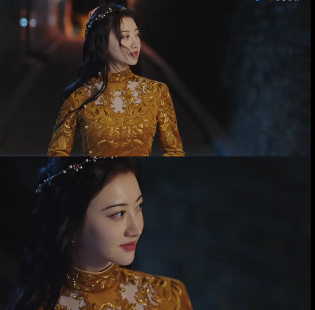 除了满满珍珠的旗袍,宫廷风气息浓厚的衣物也能凸显出司藤的“贵气”