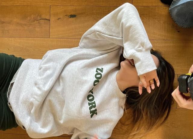 嫌纯色卫衣太单调,可以找找有设计感的、存在感没那么强的字母印花。▼