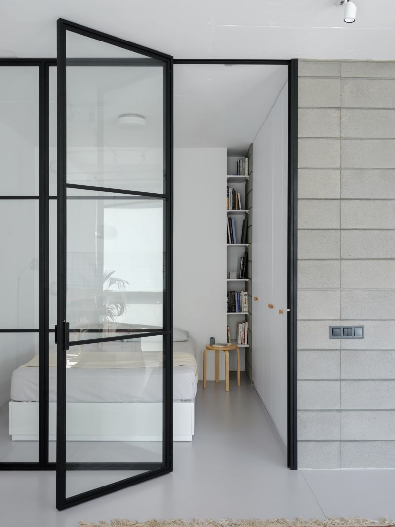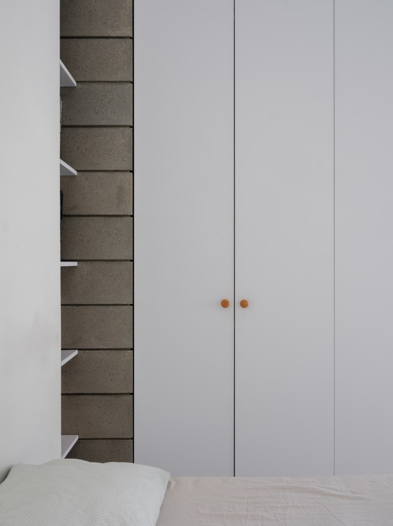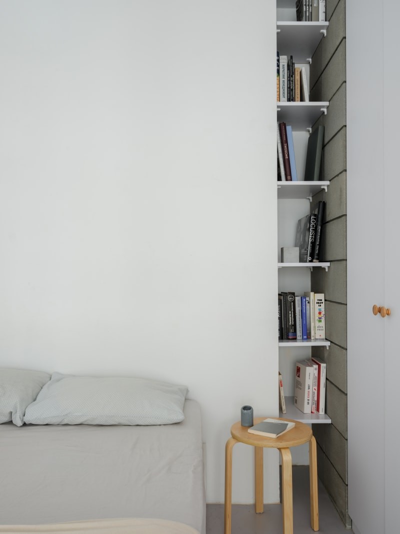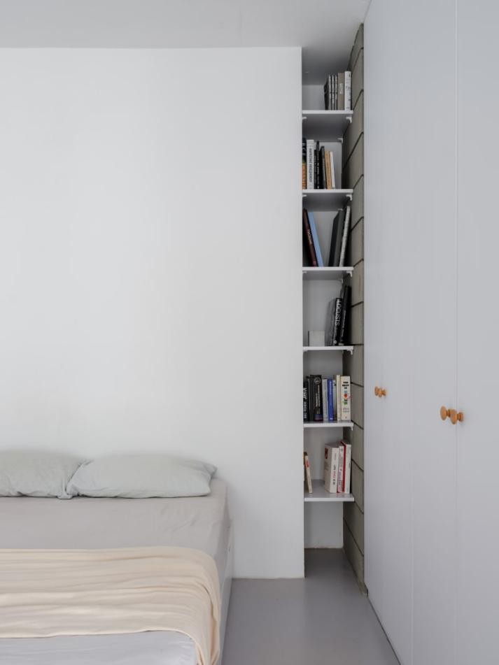 一个比较相似的设计就是在非承重墙上挖壁龛,将其改为置物空间,同样是比较省地的做法。