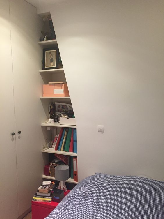 最简单的办法就是在这一拃宽的缝隙处,装上多层的隔板,几乎不用多改动,一排2米多得收纳空间就有了。靠近床头还能解决床头柜的储物问题,如果家里床过道比较窄的,这样的设计更方便了,不会占过道空间就能代替床头柜的了。