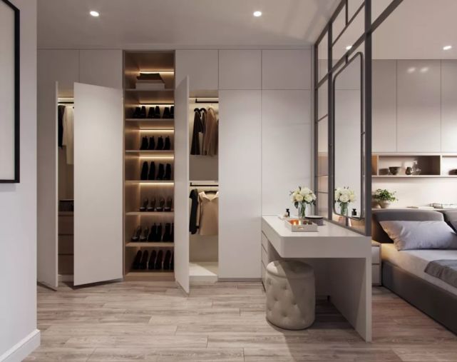 衣柜的款式直接影响卧室的颜值,随着人们审美与生活方式的改变,入墙式衣柜越来越受欢迎,它美观,实用,比传统的大衣柜好太多。