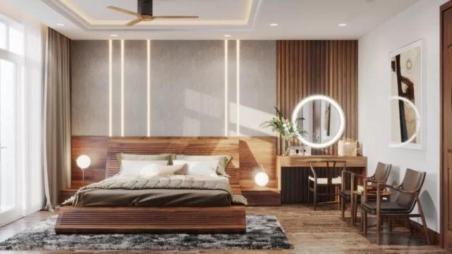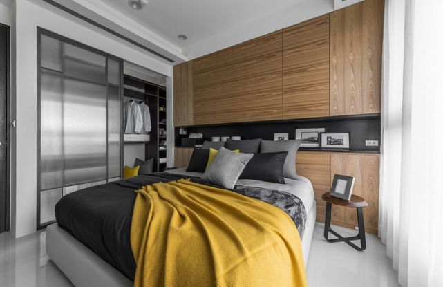 将床头柜与床板设计成一体,不仅解决了搭配床头柜难的问题,也减少了卧室的卫生死角。