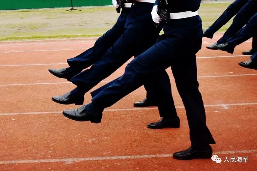 在整齐的队伍中迈着坚定的步伐