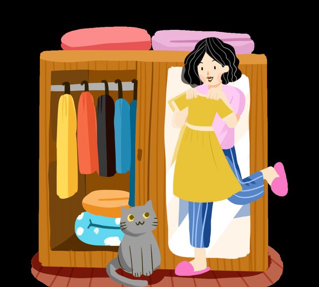 收拾好的衣服放哪里呢?这些最起码要半年不穿的换季衣服一定要放到不常用的地方,比如衣柜顶部,或者需要弯腰拿取的底部。