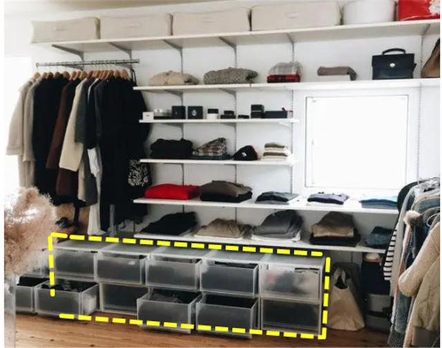 此外,日本人的衣柜内收纳也做得比较到位。透明收纳抽屉最为常用,一般可直接放在挂放的衣物下方,不占空间又简洁大方。