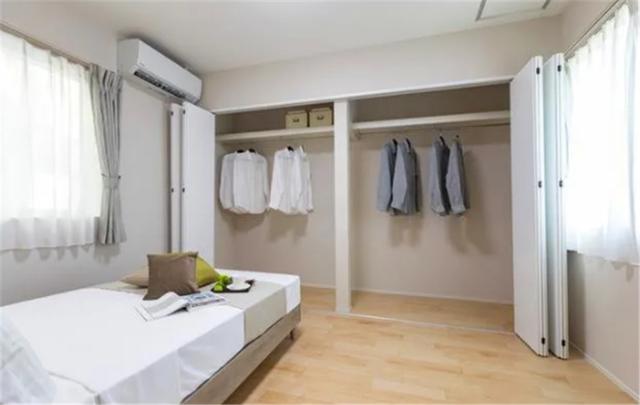 除了这种简易的衣帽间外,日本人还比较喜欢在室内做壁橱。墙壁内掏空,外面加扇推拉门,就能直接作为衣物收纳区。