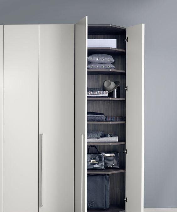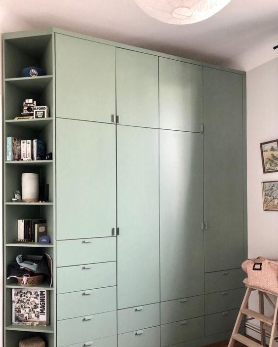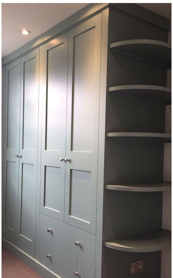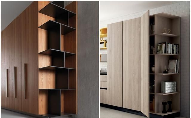 早几年比较流行的,衣柜侧边留空,专门作为开放式的置物区,放些常用的东西还是不错的,还能放上几个摆件和绿植,加以点缀。