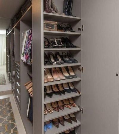 玄关柜不够用的,咱们就能适当找衣柜侧边借点空间,单独做成鞋柜区域~
