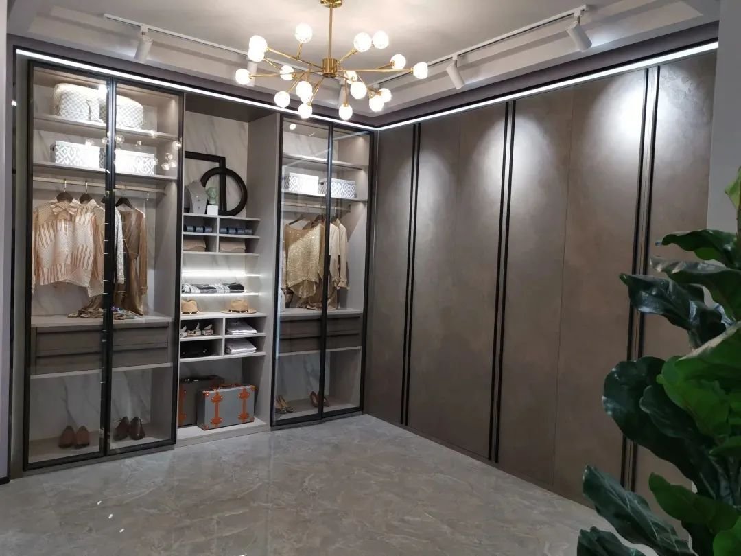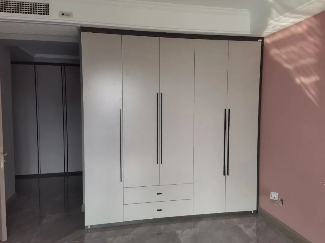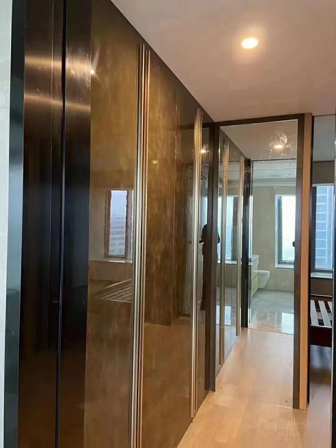 到顶的衣柜,提升了空间开阔感,更时尚潮流。再加上长拉手的搭配,空间开阔感更提升了。