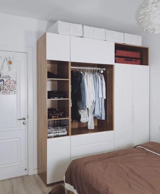 那么买成品的衣柜,里面用的什么板材你是看不见的,有些都是贴皮的板材,光从外观很难分辨出是什么板材,那么是否环保就要打衣柜问号了。其实根据价格来看,也不会用什么太好的板材,基本都是颗粒板,这种板材用锯末做成会加入大量的胶水,封在里面会慢慢挥发,如果选用了这种劣质的板材,那么你就会长期处在慢性中毒的环境里。