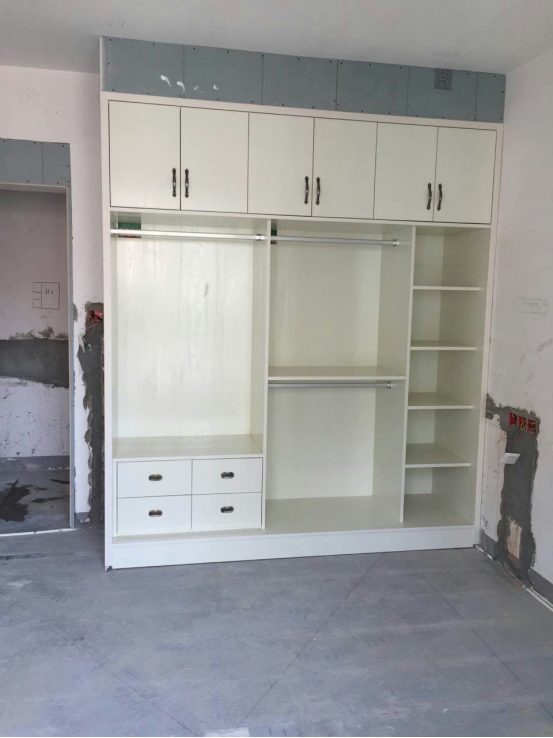 而成品衣柜一般用的是什么材料呢?一般都是用颗粒板做的比较多,颗粒板都知道用的都是一些木材锯末做成的板材,这样的板材用个一两年基本就会变形,如果是返潮那么腐烂的更快。还有一些不知名小作坊做的柜子,基本都是纸浆板,那么结实程度就更不用讲了。这只是对比同等价位的板材,如果升级其他板材也是可以,比如像一些实木家具,那么价格也会比木工的高很多。