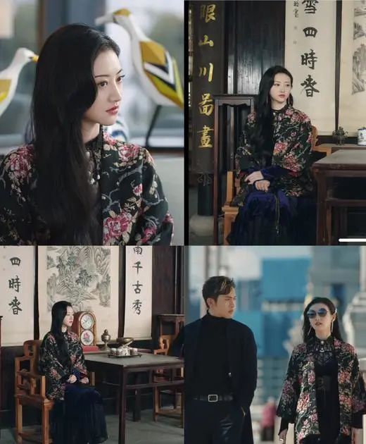 看得出,景甜在剧中大部分的旗袍造型以仙气的浅色系为主,但如果换成深色系,反而多了一份神秘大气的美。