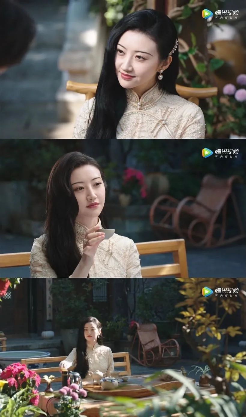 剧中最仙的造型应该就是旗袍+轻纱的组合,为了打造优雅又梦幻的朦胧美,旗袍外加轻纱衣的搭配特别像江南水乡柔美的大小姐,优雅中带点仙气儿飘飘。