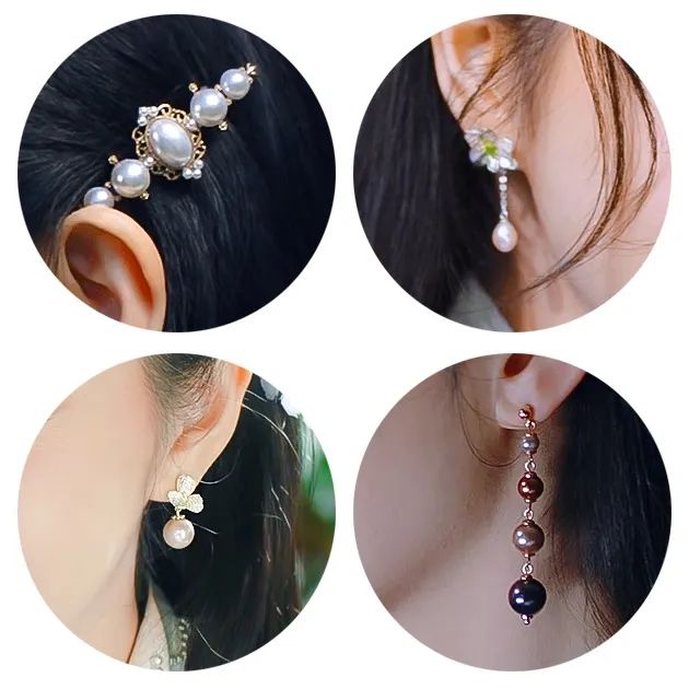 耳环和发夹,则是多用了贵气沉稳,又比较有年代感的珍珠材质。