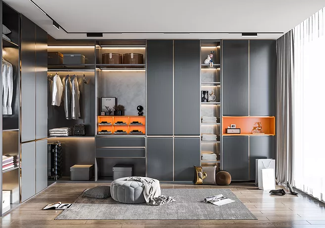 布局设计衣柜的时候,要考虑一下女生的包包放哪里?行李箱放哪里?裤子怎么收纳?儿童的衣服怎么收纳?长的衣服怎么收纳?内衣裤怎么收纳?等等都是需要各个慢慢协调布局的。在考虑怎么收纳这些东西的时候,还需要结合一下自己的生活习惯。是习惯叠衣服还是习惯挂衣服等。