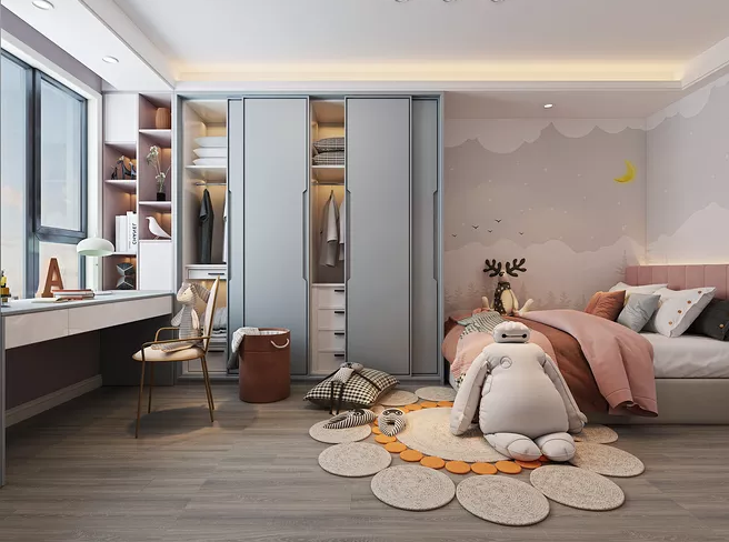 儿童房的衣柜可以做成活动隔板,这样就可以根据孩子的成长,来调整衣柜的内部空间大小。等孩子长大后也就不需要换衣柜了。