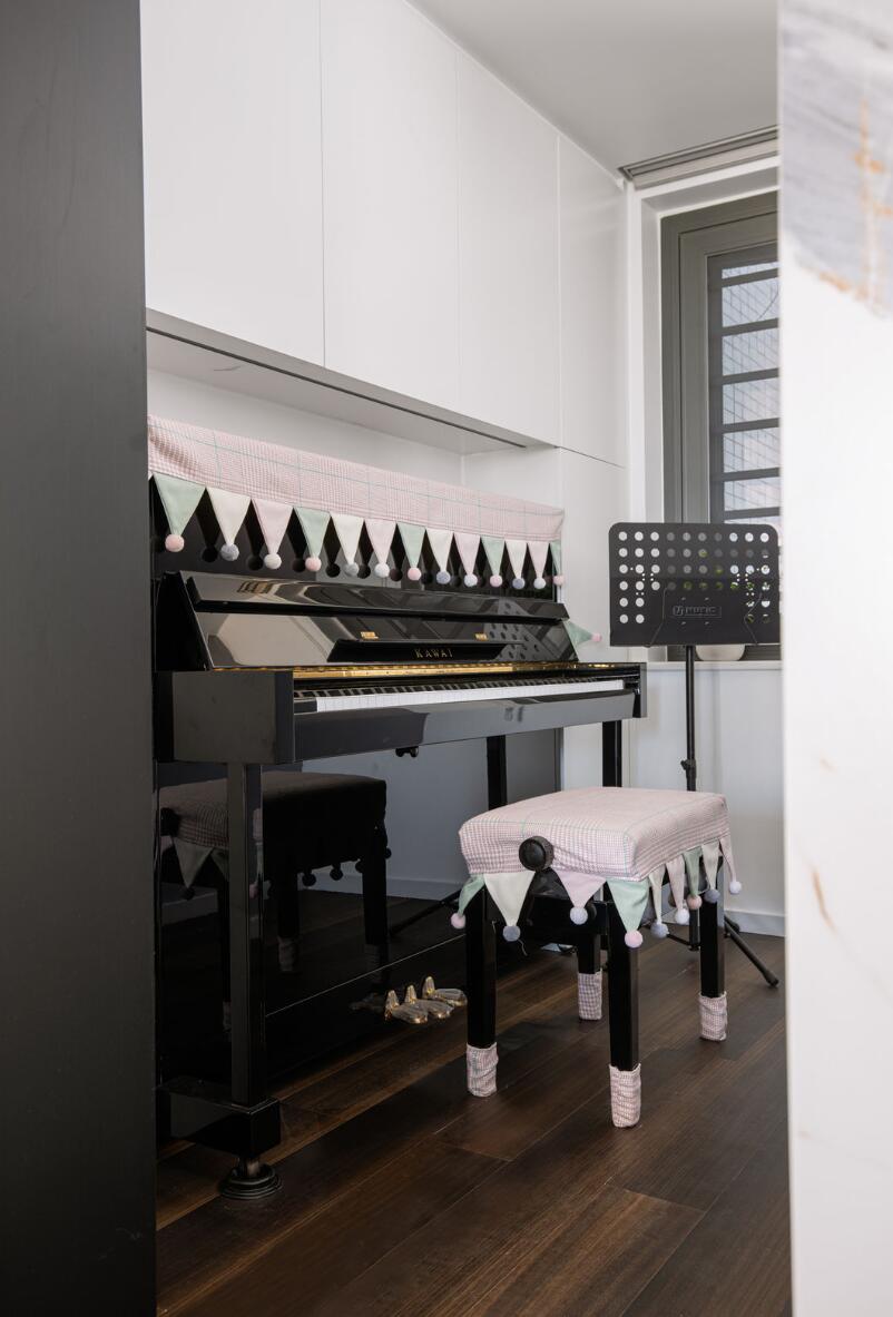 将钢琴内嵌到柜子中,既合理利用了空间,也让空间看起来更加整洁干净了。