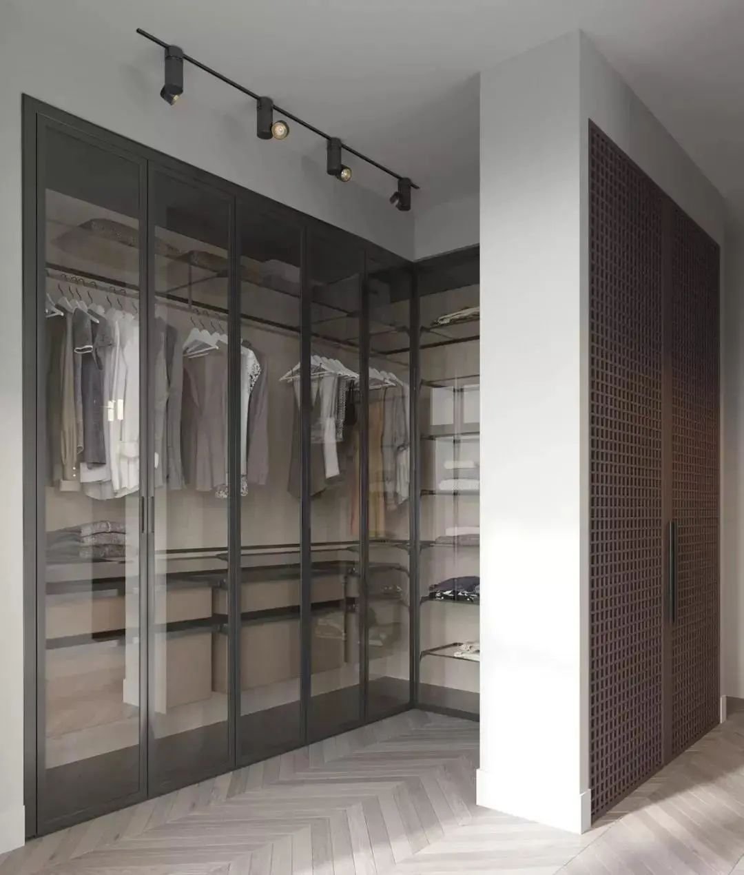 内部的衣柜搁板能够设计成活动层板,可以根据不同季节与时期的储物需求调整,灵活度高,更加实用。