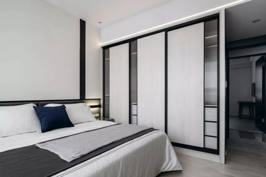 以墙面作为衣柜的两个侧面,根据墙面空间定制嵌入式柜体,只展现衣柜门板外观,这一类衣柜便是入墙式衣柜,通常也叫嵌入式衣柜。