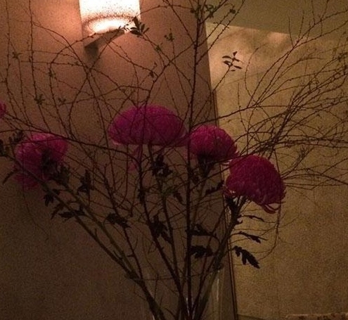 墙上的灯光微弱着照在一个单人沙发上面,而旁边是一束树枝和鲜花搭配的花瓶,虽然这只是一个角落,但是仍让人感觉很温馨。