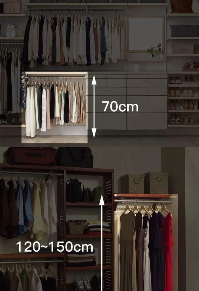 我自家装衣柜,当初只有一个要求,宁愿不要叠衣区,都要尽可能多做挂衣区,阳台上晾干的衣服顺手就放进柜子里,岂不是更好,像有些短衣区下面多留点,也能做简单的叠衣区。