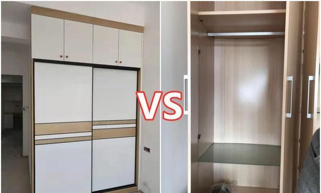 左右推拉的移门虽说不占过道空间,但使用中,柜内只能开一半,如果不是过道不够的情况,个人更建议用双平开门更便利。