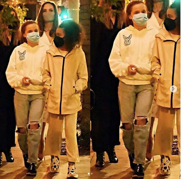 朱莉周四与长女扎哈拉·朱莉·皮特(Zahara Jolie-Pitt)在西好莱坞的克雷格(Craig"s)一起吃晚饭,她的春季衣柜,依然是黑白灰高级色为主流。