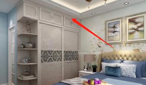 我们家选择“这样”处理,衣柜顶部距离屋顶大概10-20公分,然后使用石膏板在顶部进行隔离,中间使用射灯进行装饰。这样就能防止以上的现象出现了,而且卧室里面非常美观。