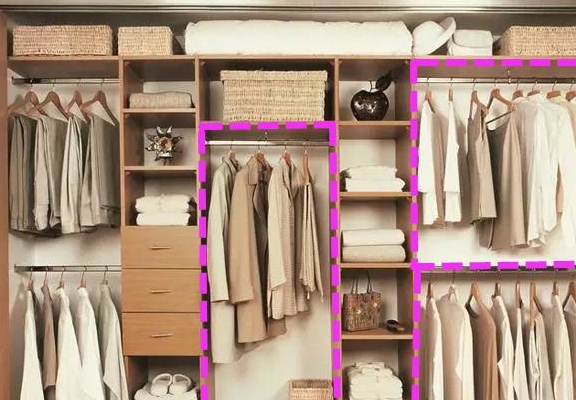 8、根据自己的需要设计衣柜布局。一般来说,建议留足挂衣区域。衣服挂起来收纳比叠起来堆放更方便,而且衣服不会出褶。